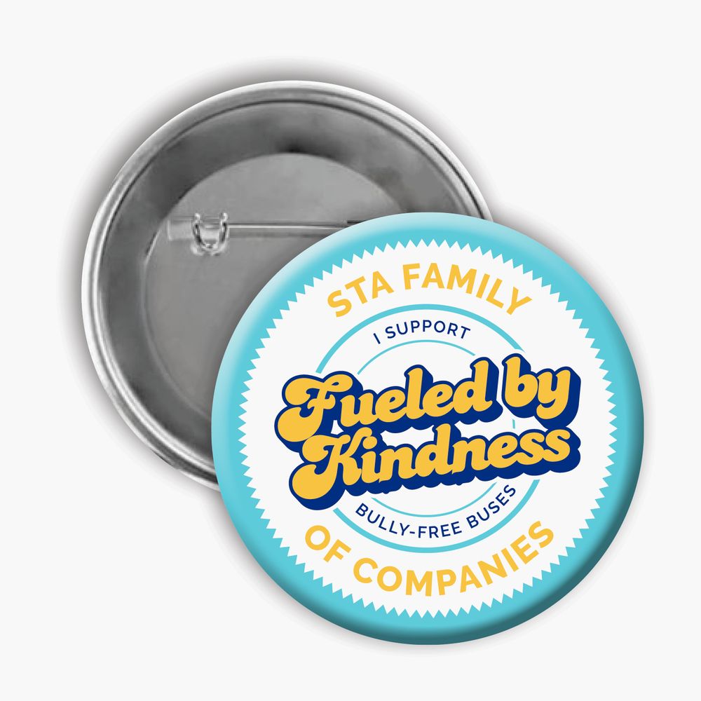 sku: 15533703_BPGet your message across loud and clear with these high‐quality buttons! Measuring 3 inches across, these round celluloid/metal buttons include a safety pin back and full-color process printing with our Fueled By Kindness messaging.